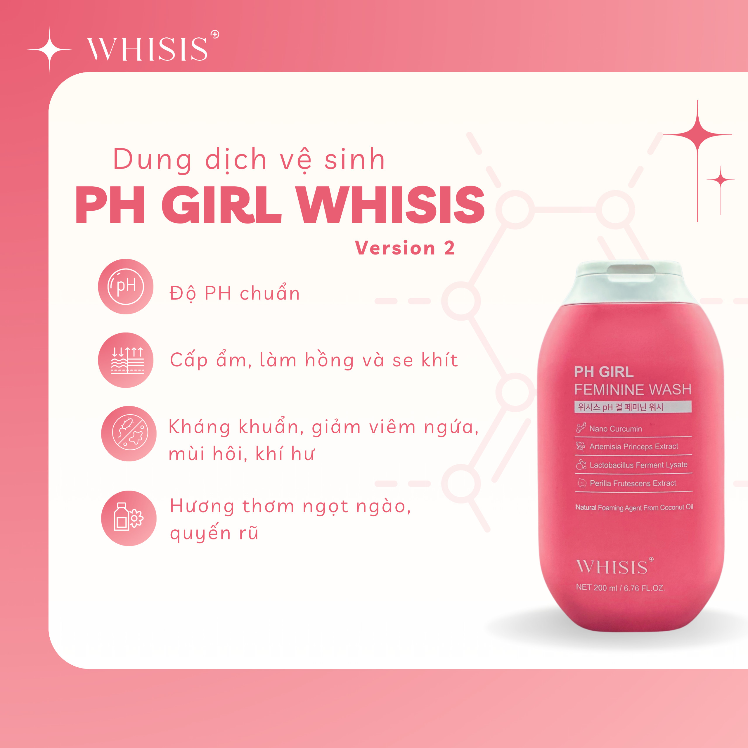 Dung Dịch Vệ Sinh PH Girl Whisis 200ml - Hương Nước Hoa, Sạch Nhẹ Nhàng, Khử Mùi, Se Khít