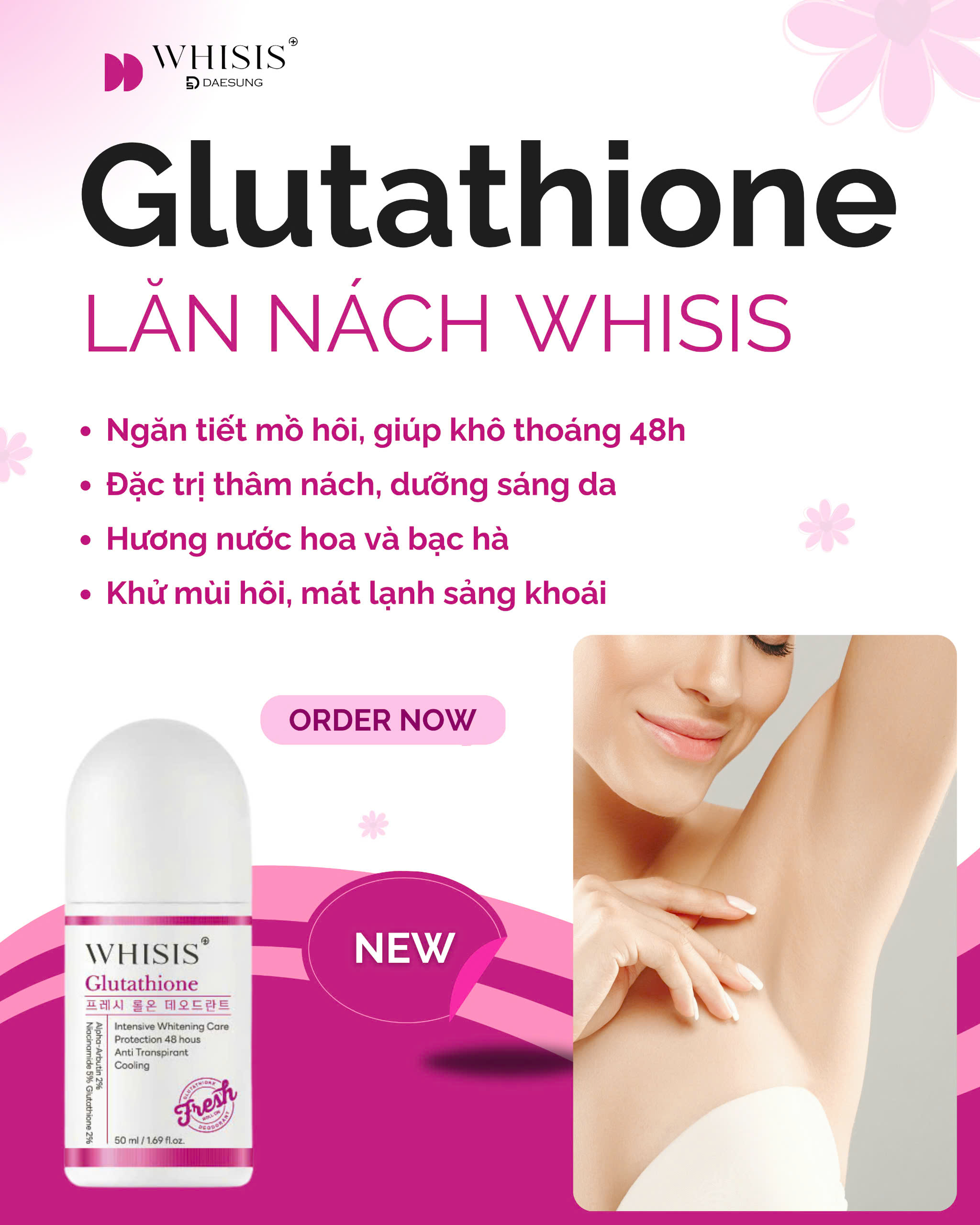 Thành phần Lăn khử mùi của WHISIS chứa #Niacinamide + #Glutathione - "bộ đôi" vàng trong làng dưỡng trắng, giúp bạn nhanh chóng lấy lại làn da trắng mịn vùng dưới cánh tay.
