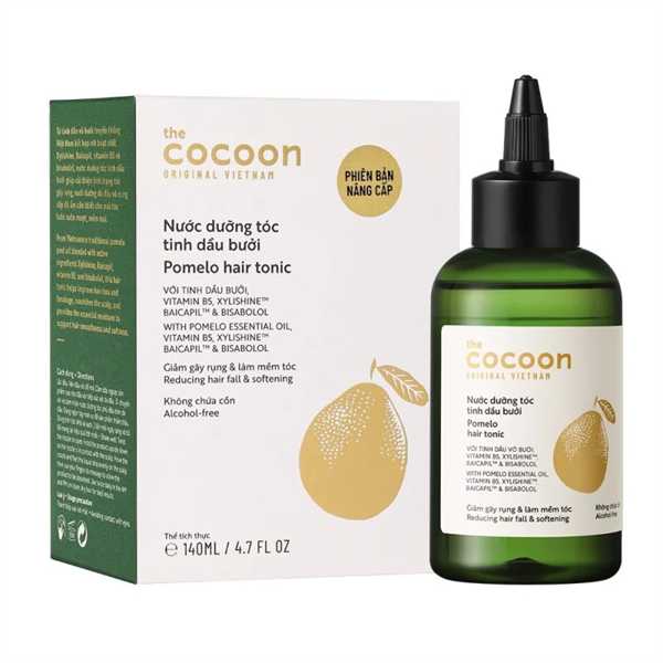 Nước Dưỡng Tóc Giảm Gãy Rụng Và Làm Mềm Tóc Tinh Dầu Bưởi The Cocoon Pomelo Hair Tonic là nước dưỡng tóc thuộc thương hiệu mỹ phẩm thuần chay Cocoon, với tinh dầu bưởi nguyên chất từ vỏ bưởi Việt Nam, kết hợp với hoạt chất Xylishine (Chiết xuất từ gỗ & tảo nâu) và vitamin B5 giúp giảm gãy rụng và khô xơ, cung cấp dưỡng chất giúp tóc luôn suôn mượt, mềm mại