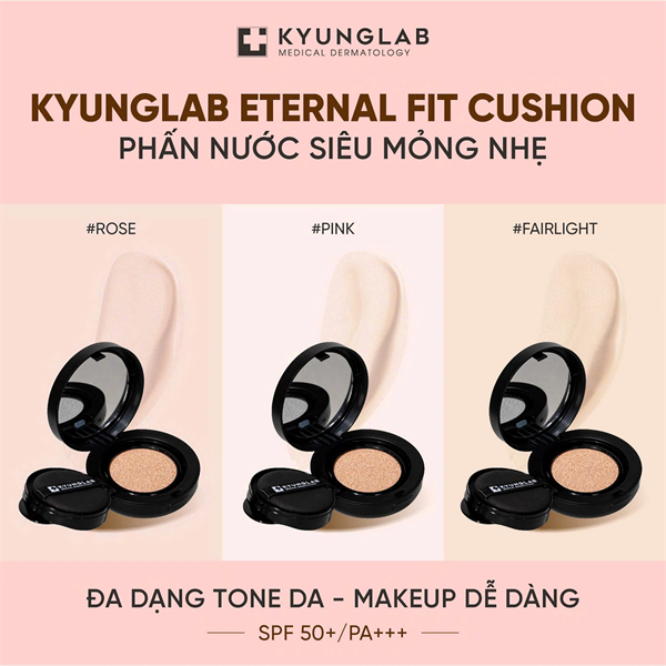 KyungLab Eternal Fit Cushion không chỉ giúp bạn có lớp nền căng bóng, mịn màng mà còn có bảng màu đa dạng.