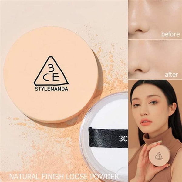 - Phấn Phủ Bột 3CE Natural Finish Loose Powder 8.5g giúp kiềm dầu tốt cùng khả năng giữ lớp trang điểm lâu trôi.