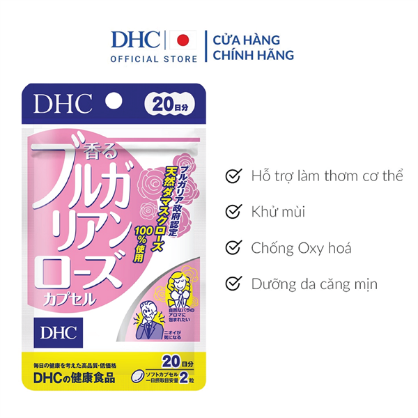 – Viên uống hương hoa hồng DHC Bulgarian Rose chứa công thức từ tinh dầu hoa hồng Bulgaria, hay còn gọi là hoa hồng Damask. Đây là loại hoa được mệnh danh là nữ hoàng của các loại hoa hồng vì có mùi hương ngọt ngào và nồng nàn.
