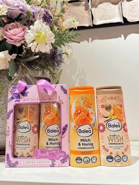 - Sữa tắm Balea được chiết xuất từ trái cây tự nhiên, hoa có hiệu quả bảo vệ và dưỡng ẩm cho làn da tự nhiên. Dưỡng chất hoa quả có hoạt tính chống oxy hóa, loại bỏ gốc tự do, làm chậm sự lão hóa da. Sữa tắm Balea với công thức dưỡng ẩm sáng tạo Poly - độ ẩm Fructose bewart giúp bảo vệ da khỏi bị khô và luôn mềm mượt.