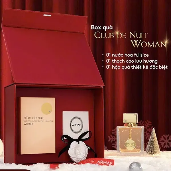 Set Quà Lễ Hội Twinkle Box Nước Hoa Nữ Armaf Club De Nuit Woman EDP 3 Món được thiết kế vô cùng sang trọng và hiện đại. Hộp quà hình vuông, họa tiết trơn đơn giản kết hợp với tông màu đỏ nhung nổi bật, ấn tượng. Thạch cao hình vuông với tông màu sang trọng.