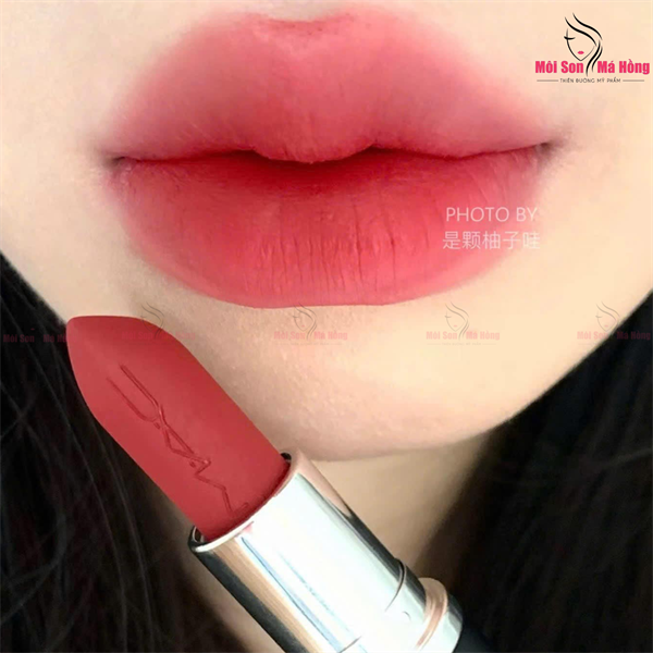 - Logo MAC được dập nổi trên thân son và chuyển ra phần viền cổ nối, tạo điểm nhấn đẳng cấp.