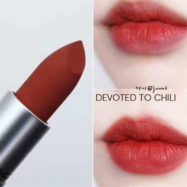 Không dừng ở đó, Mac Powder Kiss Devoted To Chili 916 cho tông da biến tầu hài hòa và phong cách. Bởi không ít cô nàng cho rằng với màu son này khó có thể kết hợp với nhiều phong cách thời trang và không tôn da. Tuy nhiên, màu son tôn da, không làm xỉn men răng. Tạo nên sự hài hòa trên tổng thể cả khuôn mặt cho các chị em.