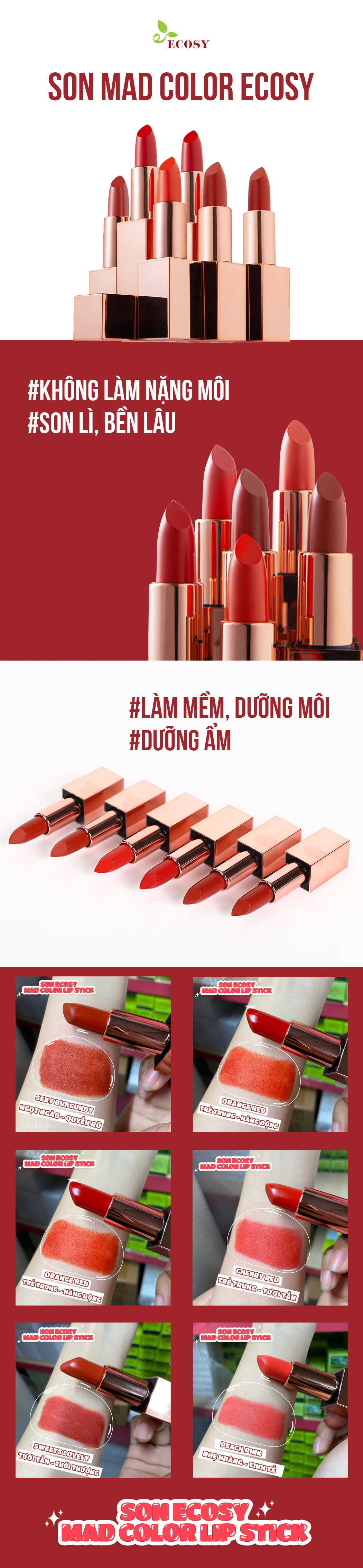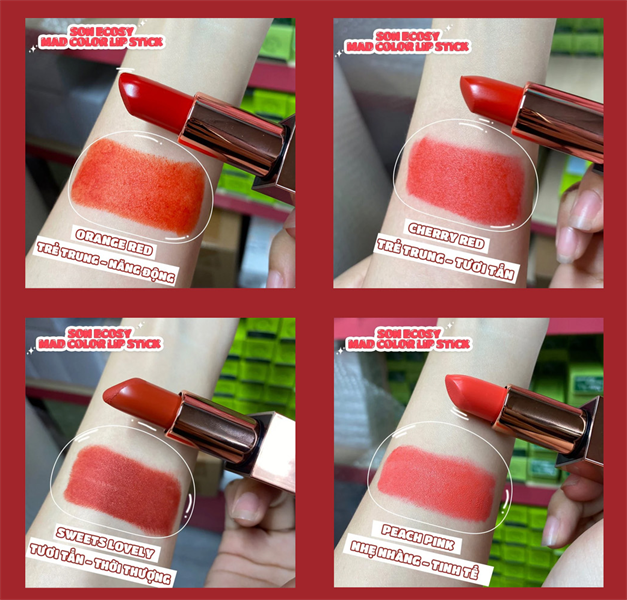 - Chất son dày mềm mịn, sau khi thoa để lại độ ẩm trên môi cực kì mướt không lộ vân môi. Son lên màu khá chuẩn chỉ sau 1 lần thoa.