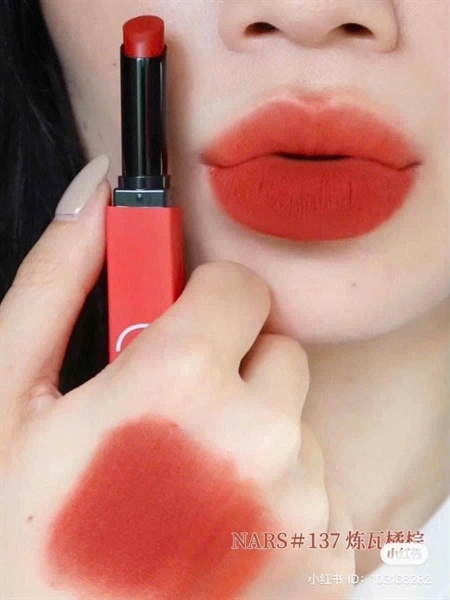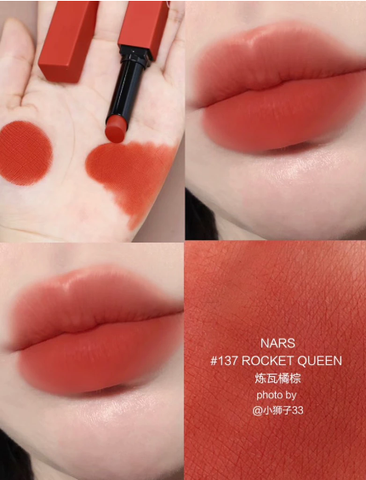 Son Nars Powermatte Lipstick 137 Rocked Queen sở hữu tông màu Đỏ Cam siêu hot mà bất kể cô gái nào cũng muốn trong bộ sưu tập son của mình. Son Nars 137 đỏ cam có được vẻ đẹp rực rỡ nhờ sự giao thoa giữa sắc đỏ nồng nàn và vẻ tươi tắn của cam. Đây là 1 gam màu cuốn hút và siêu thời thượng. Một cảm giác trẻ trung và tràn ngập năng lượng là những điều nàng hay nhìn thấy ở sắc son này. Tuy nhiên khi kết hợp với những bộ cánh sang trọng thì độ đẳng cấp và tinh tế của đỏ cam cũng chẳng hề kém cạnh.