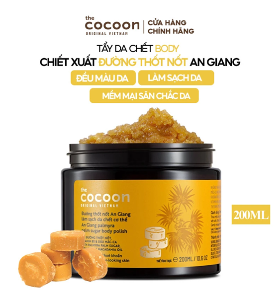 TẨY DA CHẾT BODY ĐƯỜNG THỐT NỐT GIÚP ĐỀU MÀU DA, MỀM MỊN COCOON PALMYRA PALM SUGAR BODY POLISH 200ML